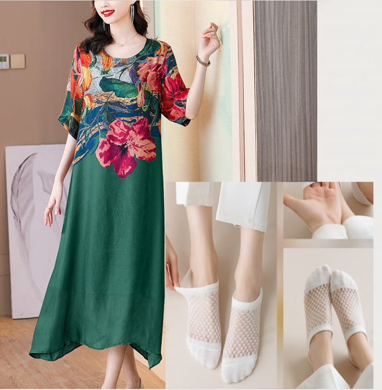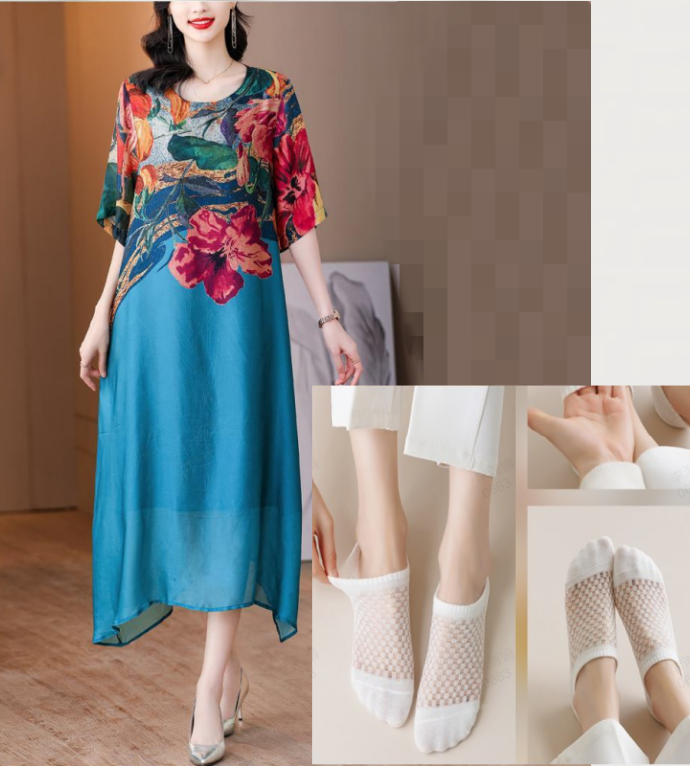 This stunning dress is designed to flatter and enhance your curves while providing the utmost comfort and elegance. Its flowing silhouette and intricate patchwork details make it a perfect choice for any occasion, from casual outings to special events. The combination of floral prints and solid colors adds a touch of sophistication to your look, ensuring you stand out from the crowd.